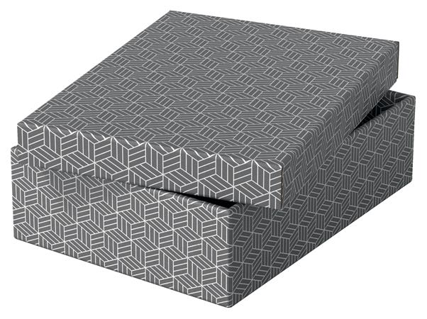 Súprava troch stredných lepenkových úložných boxov s moderným a štýlovým geometrickým dizajnom.