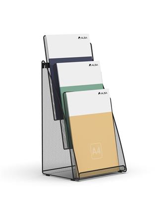 Stojan na prospekty, drôtený, stolový, vertikálny, A4, 3 priehradky, ALBA, čierny