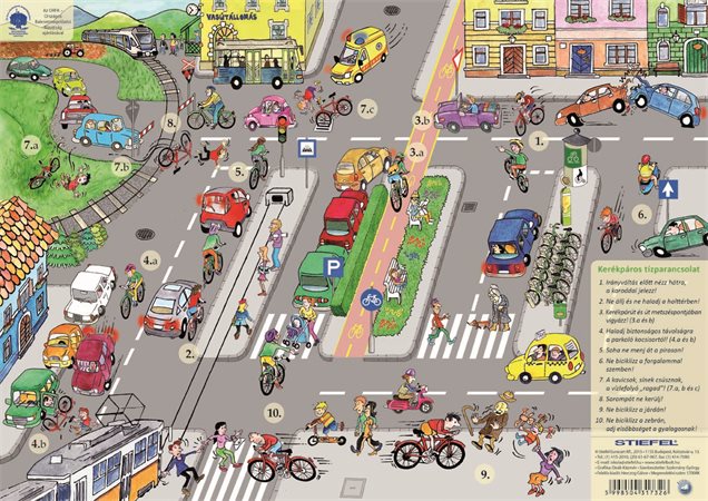 Podložka na stôl, obojstranná, A3, STIEFEL "Kerékpáros túlélés tízparancsolata - Predpisy pre cyklistov" - výrobok v MJ