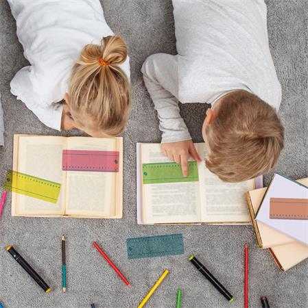 Špeciálna sada farebných pravítok na pomoc pri písaní a čítaní, užitočná v uzatvárateľnom puzdre. -5 rôznych farieb (modrá, zelená, ružová, oranžová a žltá) -rozmery: 19 x 7 cm (pravítková časť 18 cm) -ideálna na školské použitie pri písaní a čítaní -znižuje zrakové poruchy a bolesti hlavy -vyrobené z recyklovaného PET materiálu
