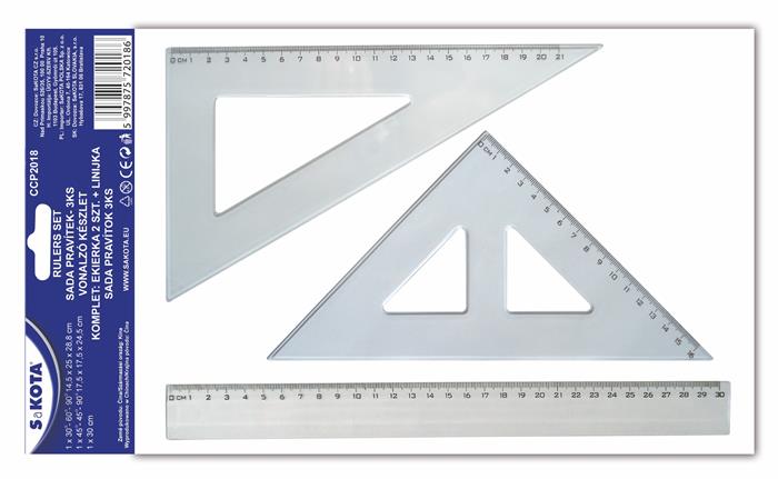 Pravítko, sada, plastové, 3 ks, SAKOTA
