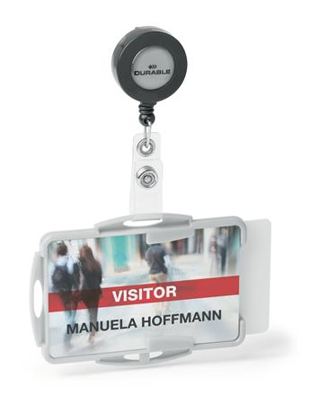 Hlavná stránkaKancelárske potrebyKancelárske doplnkyVisačky, menovkyVisačka, pre 2 karty, otvorená, DURABLE "ECO", čierna