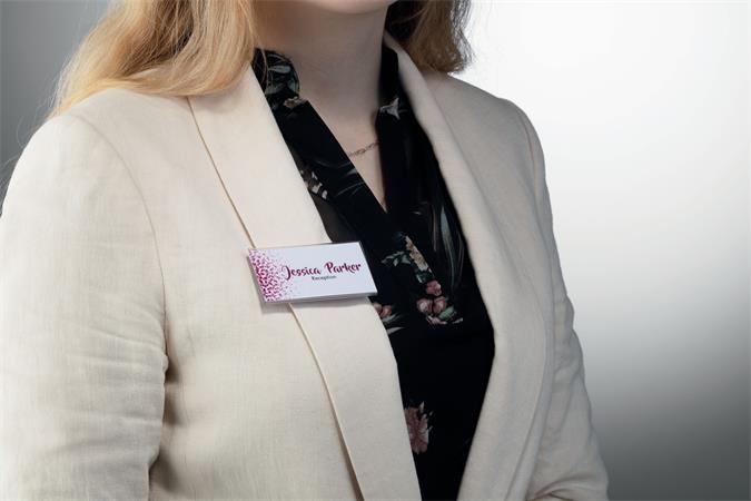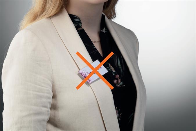 - špecifické zapínanie, ktoré zabraňuje otáčaniu, skĺznutiu alebo uvoľneniu menovky pri nosení