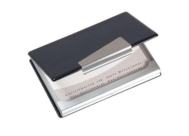 Krabička na vizitky, hliník/koženka, 20 ks, SIGEL