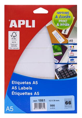 Hlavná stránkaKancelárske potrebyKancelársky papierEtiketyEtikety, 12x30 mm, zaoblené rohy, na liste formátu A5, APLI, 990 etikiet/bal