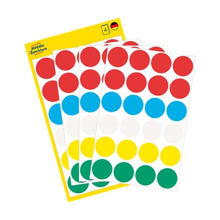 Etikety, okrúhle, priemer: 18 mm, AVERY ZWECKFORM, 5 rôznych farieb, 96 etikiet/bal