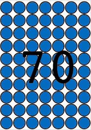 Etikety, okrúhle, priemer: 19 mm, farebné, na liste formátu A5, APLI, modré, 560 etikiet/bal