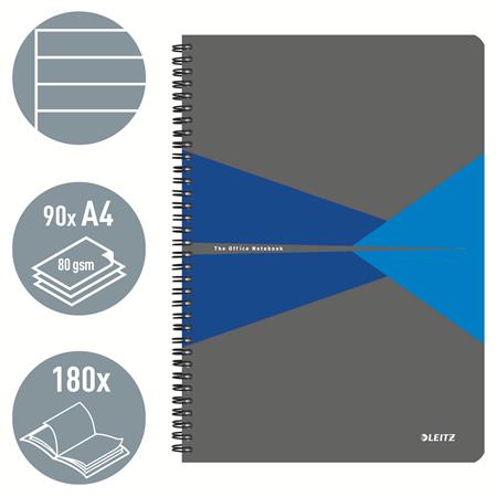 Blok, A4, linajkový, 90 listov, PP obálka, LEITZ "Office", sivá-modrá