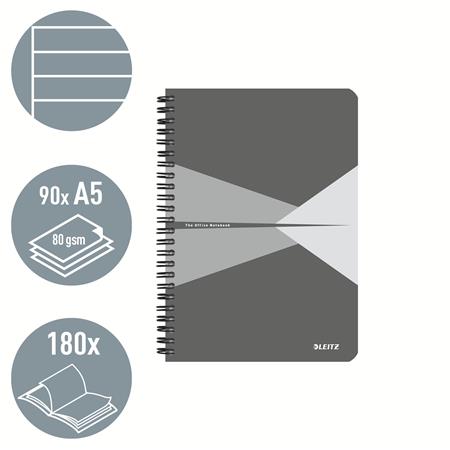 Blok, A5, linajkový, 90 listov, laminovaná kartónová obálka, LEITZ "Office", sivá