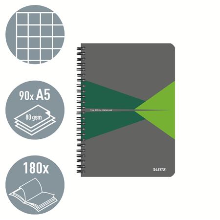 Blok, A5, štvorčekový, 90 listov, PP obálka, LEITZ "Office", sivá-zelená