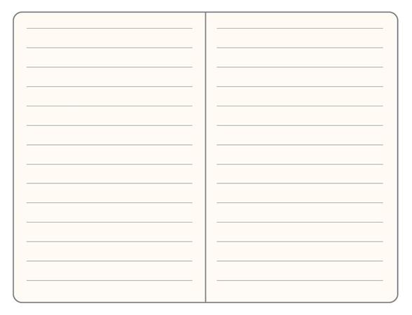 - bez dátumov - formát A5 - zaoblené rohy - uzatvárateľné na gumičku - 104 strán - linajkový - papier krémovej farby