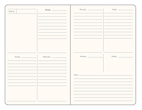 - bez dátumov - rozmer A5 - zaoblené rohy - uzatvárateľné na gumičku - 104 strán - linajkový - papier krémovej farby - papier 80 g/m2