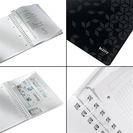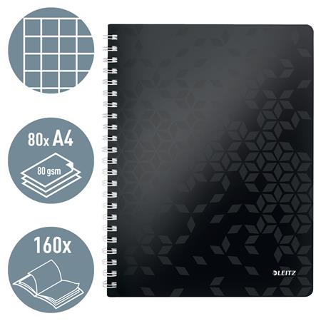 Špirálový zošit, A4, štvorčekový, 80 listov, LEITZ "Wow", čierna
