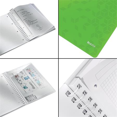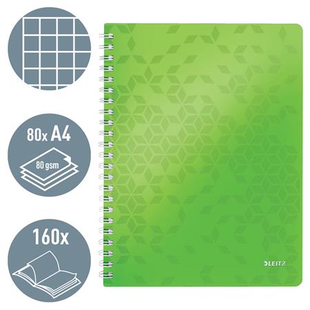 Špirálový zošit, A4, štvorčekový, 80 listov, LEITZ "Wow", zelená