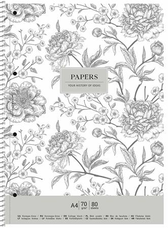 Špirálový zošit, linajkový, A4+, 80 listov, SHKOLYARYK "Vintage flowers", mix