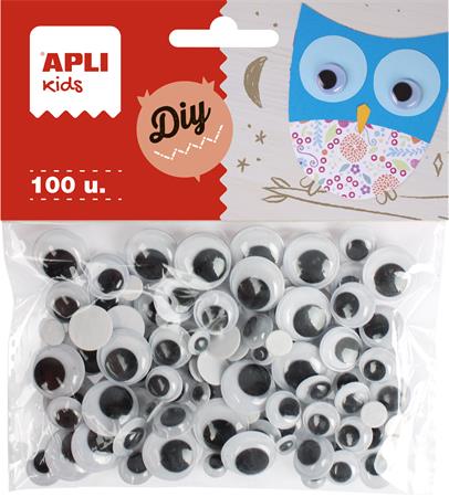 Samolepiace pohyblivé očká, okrúhle, APLI "Creative", čierne-biele