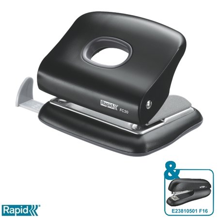 Dierovačka, 2 dierky, 20 listov, RAPID "FC20 Fashion", čierna
