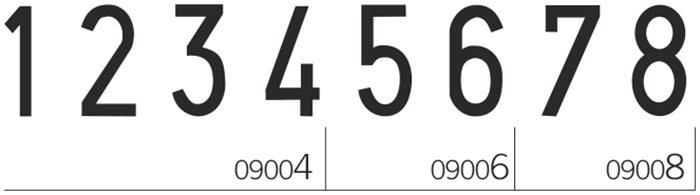 - všetky pásky obsahujú číslice od 0 do 9, lomku, pomlčku, medzeru a bodku