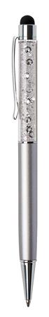 Guľôčkové dotykové pero, s bielymi krištáľmi, 14 cm, Crystals from SWAROVSKI®, strieborná