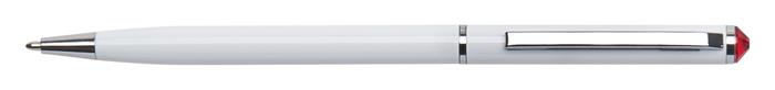 Guľôčkové pero, Crystals from SWAROVSKI®, s light siam červeným krištáľom, 13 cm, ART CRYSTELLA, biela