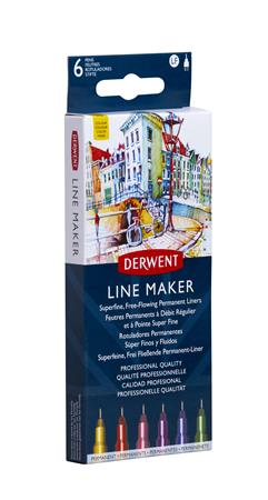 Liner, sada, 0,3 mm, DERWENT "Line Marker", 6 rôznych farieb