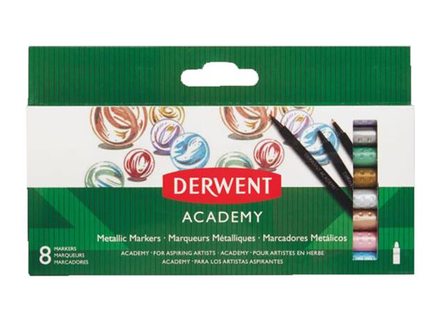 Fixky, sada, DERWENT, "Academy", 8 rôznych metalických farieb