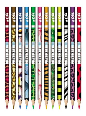 Farebné ceruzky, sada, trojhranné, COOL BY VICTORIA "Wildlife", 12 rôznych farieb