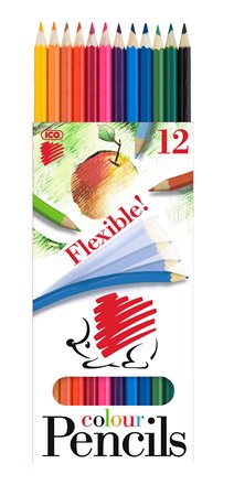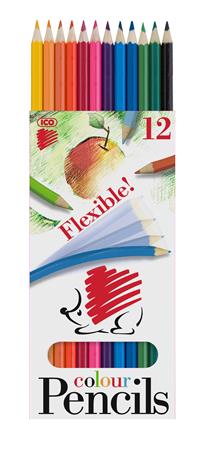 Farebné ceruzky, šesťhranné, ohybné, ICO "Ježko", 12 rôznych farieb