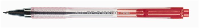 Guľôčkové pero, 0,27 mm, stláčací mechanizmus, priehľadné telo, PILOT "BP-S Matic", červené