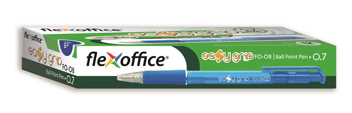 Guľôčkové pero, 0,4 mm, stláčací mechanizmus, FLEXOFFICE "EasyGrip", modré