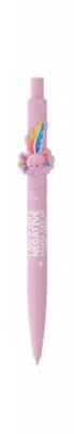 Guľôčkové pero, 0,8 mm, stláčací mechanizmus, ružové telo pera, ICO "Axolotl", modré