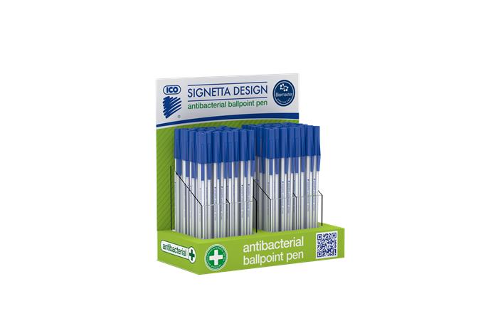 Gulôčkové pero, displej, 0,7 mm, s vrchnákom, antibakteriálne, ICO "Signetta", modrá