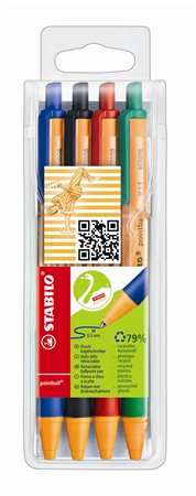 Guľôčkové pero, sada,  0,5 mm, STABILO "Pointball", 4 rôzne farby