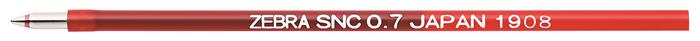Náplň Zebra SNC je náplň s priemerom guľôčky 0,24 mm pre guľôčkové pero bLen. - špeciálny emulzný atrament rýchlo schne - nerozmazáva sa - ľahko kĺže po papieri - farba atramentu: červená