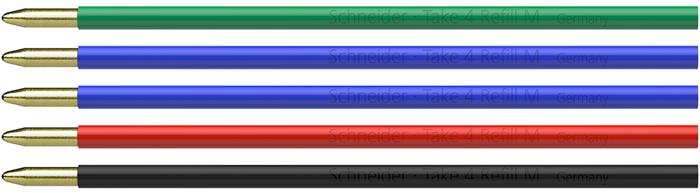 Náplň do guľôčkových pier, 0,5 mm, SCHNEIDER "Take 4", 4 rôzne farby