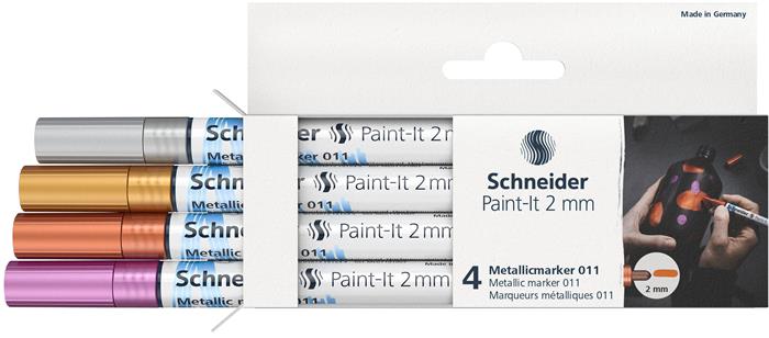 Akrylový popisovač, sada, 2 mm, SCHNEIDER "Paint-It 011", 4 rôzne farby