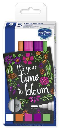 Kriedový popisovač, sada, 2,4 mm, kuželový, STAEDTLER "Lumocolor® 344", 5 rôznych farieb