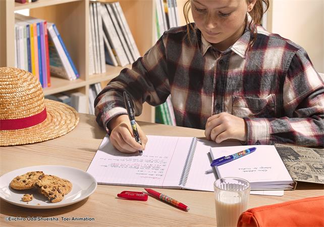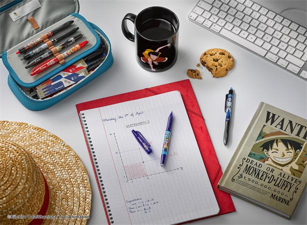 -trojuholníkový spodný dizajn pre ešte pohodlnejšie písanie (FriXion Ball+) -decentné a elegantné matné čierne telo -prvé vymazateľné a ekologické pero -s unikátnou nálepkou One Piece