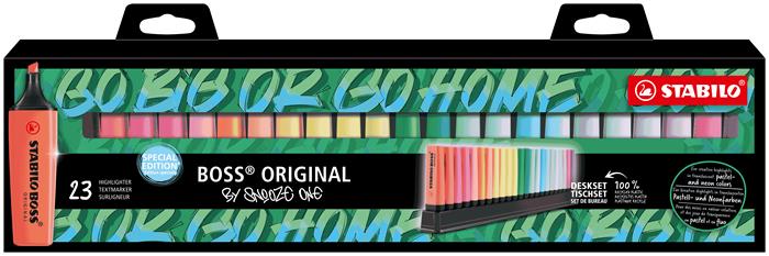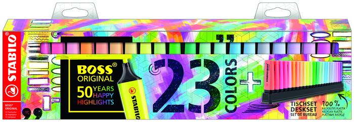 Zvýrazňovač, sada, 2-5 mm, STABILO "Boss 50th Birthday" 23-kusová stolová sada