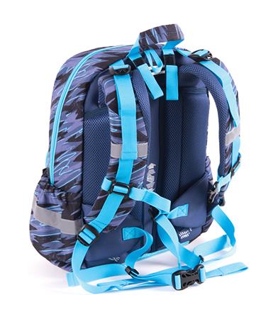 - priehradky: 2 veľké vnútorné priehradky + 1 predná + 2 bočné priehradky - vystužené ramenné popruhy s nastaviteľnou dĺžkou - anatomický chrbát so sieťovinou a penou - hrudný a bedrový popruh pre správnu oporu - kovový zips - materiál: polyester 600d - rozmer: 41x28x20 cm - hmotnosť: 0,87 kg