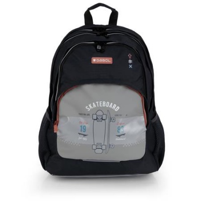 Školská taška, so zipsom, GABOL "Trick", sivá-čierna, skateboard
