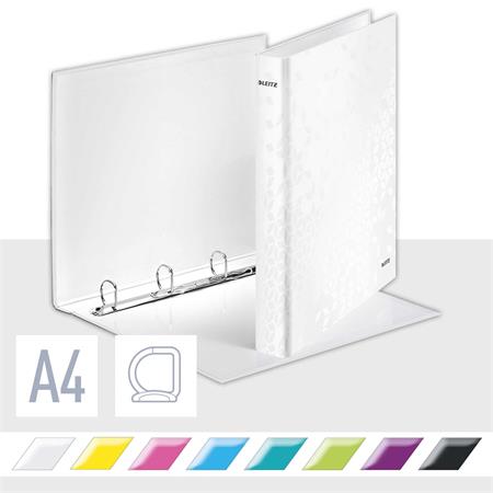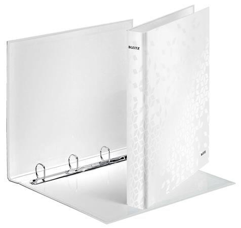 Krúžkový šanón, 4 D-krúžky, 40 mm, A4 Maxi, kartón, LEITZ "Wow", biela