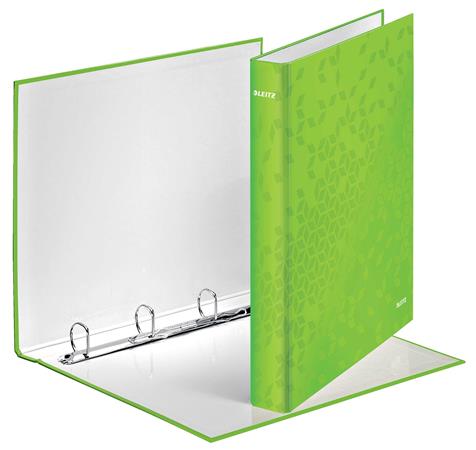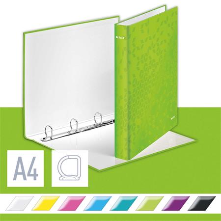 Krúžkový šanón, 4 D krúžky, 40 mm, A4 Maxi, kartón, LEITZ "Wow", zelená
