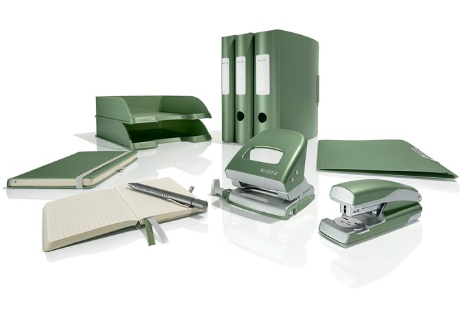 Inovatívny mobilný zoraďovač v dômyselných farbách radu Leitz Style, povrch v dizajne brúsenej ocele.,