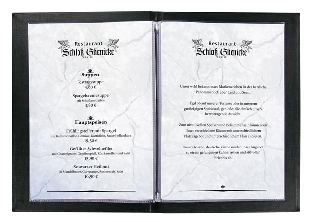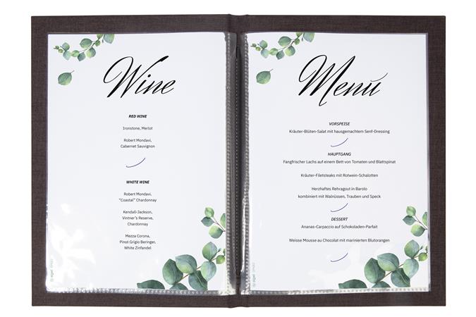 Kvalitný obal na jedálny lístok, ktorý nikdy nevyjde z módy. -formát A5 -rozmery: 148 x 210 mm -medzinárodný nápis na obálke: „Menu“ -dokumenty sa dajú ľahko vkladať a vymieňať -viazanie pomocou gumičky -ľahko sa čistí -odolný PU materiál -materiál odolný voči oderu a poškriabaniu -obsahuje 2 priehľadné puzdrá – na 8 strán (ďalšie náhradné puzdrá dostupné pod číslom produktu SISM181)