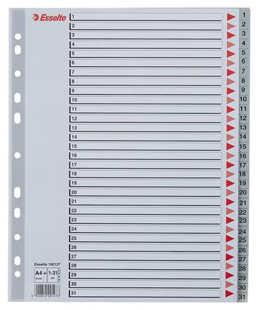 Register, plastový, A4 Maxi, 1-31, ESSELTE, sivý