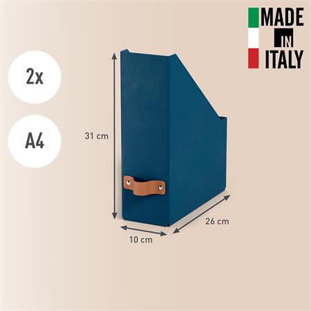 Súprava dvoch stojanov na časopisy zo 100% recyklovaného kartónu s certifikátom FSC s moderným a čistým dizajnom, ktorý doplní vašu domácnosť aj kanceláriu.