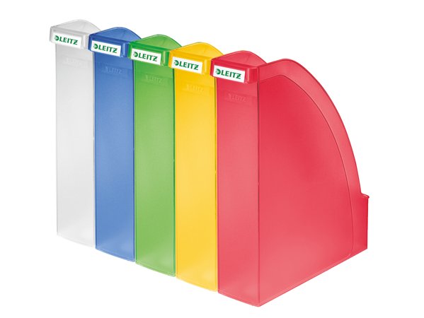 Veľmi pevný stojan na časopisy prémiovej kvality, ktorý je súčasťou uceleného systému radu plastových doplnkov Leitz Plus,
