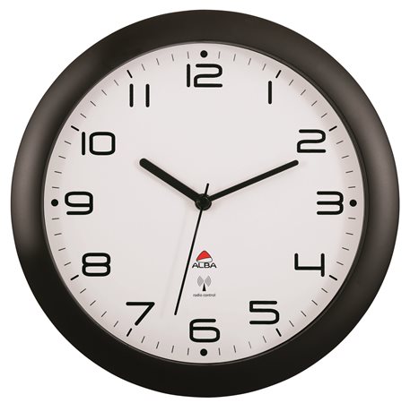 Nástenné hodiny, riadené rádiovým signálom, 30 cm, ALBA "Hornewrc", čierna