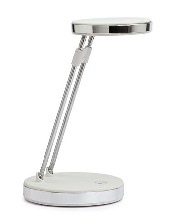 Lampa energeticky úspornej triedy „A“ s LED žiarovkami bez možnosti ich výmeny so životnosťou cez 15 000 hodín s denným neutrálnym bielym svetlom 6500 °K. Svietivosť 1 300 luxov pri vzdialenosti 33 cm od stola, extrémne nízka spotreba energie cca 5 kWh/ 1 000 h. Stabilný podstavec priemeru 13 cm so závažím a podložkou proti poškodeniu dosky stola, sklopná plastová svetelná hlava priemeru 10 cm. Zdvojené teleskopické pevné kovové ramená s nastavením dĺžky od 18,5 do 33 cm.